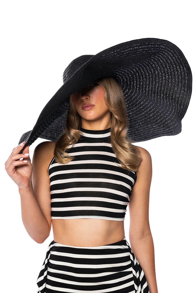 The shade of it all! The AKIRA Label The Big Drama Oversized Straw Sun Hat In Black is made from a weaved paper straw fabrication and features an oversized silhouette, a domed crown, and a floppy circular brim.